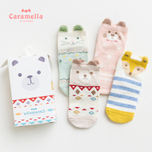 caramella2017春夏4双装亲子儿童棉袜 彩色动物船袜 宝宝礼盒袜子