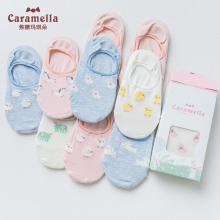 CARAMELLA2017春夏2双装女士隐形袜礼盒卡通动物AB对袜棉袜女袜子