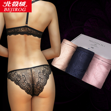 Bejirog/北极绒无痕丝滑性感透视蕾丝棉裆部女士内裤
