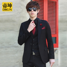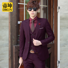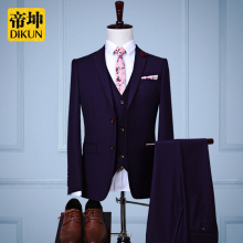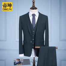 帝坤西服套装三件套男士修身韩版职业商务西装男新郎伴郎结婚礼服
