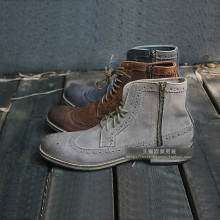 全皮做旧雕花秋冬款 反绒英伦复古短筒靴子男靴子 潮流牛仔靴