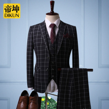 帝坤男士西服套装韩版修身格子休闲西装男三件套新郎伴郎结婚礼服