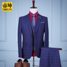 帝坤男士西服套装修身英伦格子休闲西装男套装三件套新郎结婚礼服
