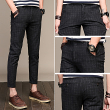 2017新款春季英伦格子男士休闲裤修身小脚裤春夏男长裤子春款直筒