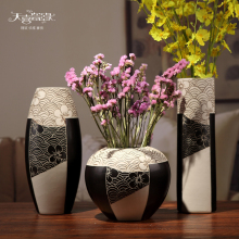 景德镇陶瓷三件套餐桌富贵竹插花瓶 创意现代家居客厅装饰品摆件
