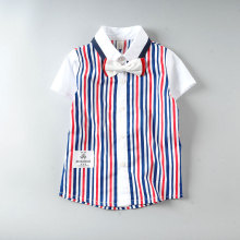 男童条纹领结短袖衬衫纯棉衬衣百搭开衫 包邮儿童装2017夏装新款