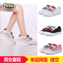 巴布豆童鞋 男童鞋2017韩版夏新款单层网面小白鞋镂空女童运动鞋