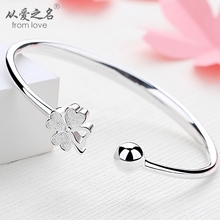 爱心四叶草S9999纯银女士开口手镯日韩简约甜美森系学生闺蜜清新