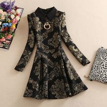春季新款女装a字裙娃娃领长袖修身大码显瘦优雅气质蕾丝连衣裙春