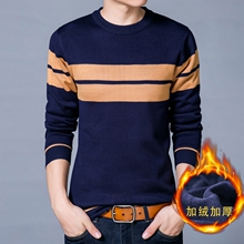 冬季新款加绒加厚毛衣男装韩版青年圆领针织衫男士保暖上衣大码潮