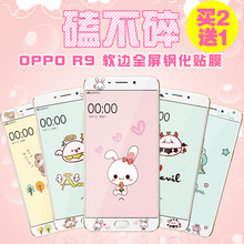 OPPOR9钢化膜R9plus可爱卡通彩膜全屏全覆盖手机保护贴膜防爆潮女