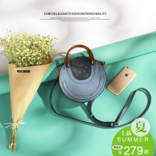 ZAMO时尚小圆包斜挎包复古金属女包圆环包手提铆钉包女单肩小包包