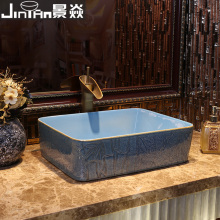 景焱欧式艺术台上盆长方形陶瓷洗脸盆家用复古台盆美式台上洗手盆