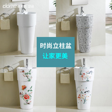 多美吉卫浴陶瓷分体立柱式洗脸盆 洗面盆阳台彩色圆形洗手盆021
