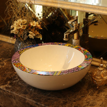 景焱欧式彩色艺术台上盆景德镇陶瓷洗脸盆圆形台盆面盆台上洗手盆