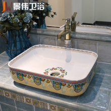 景伟 景德镇陶瓷卫浴洗脸盆 方形欧式台上盆艺术台盆洗手盆洗面盆
