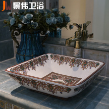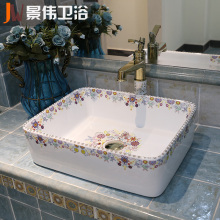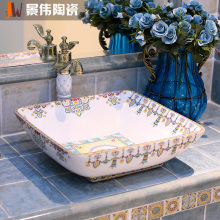 景伟台盆 景德镇陶瓷洗面盆台上盆艺术方形洗手盆洗脸盆万国花园