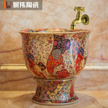 景伟 景德镇拖把池陶瓷拖布池欧式拖把盆手绘拖布盆 五彩斑斓