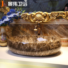 景伟 欧式台上盆洗手盆陶瓷洗脸盆卫生间面盆美式仿大理石洗漱盆