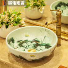 店长推荐 景伟陶瓷台盆景德镇艺术盆全手绘洗脸盆田园面盆 荷花系