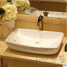 全国包邮 景德镇陶瓷加大方形台盆洗脸盆洗面盆艺术盆台上盆牡丹