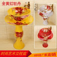 包邮立柱盆陶瓷卫浴洗脸盆卫生间阳台洗手盆艺术盆一体面盆牡丹花