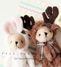 【满50包邮】小鱼家 四肢可活动变装小兔驯鹿泰迪熊公仔钥匙扣
