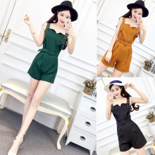 2017夏季新款韩版气质可调节背带修身收腰阔腿连体裤短裤女配腰带
