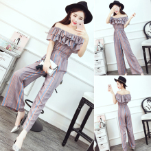 2017夏季新款韩版气质名媛一字领露肩荷叶边收腰阔腿连体裤长裤女