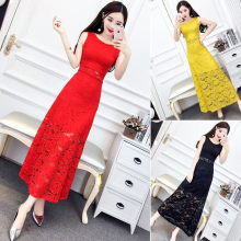 2017夏季新款韩版名媛气质圆领无袖修身显瘦蕾丝连衣裙礼服长裙女