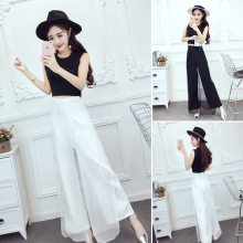 2017夏装新款韩版气质圆领无袖背心上衣+高腰雪纺阔腿裤长裤套装