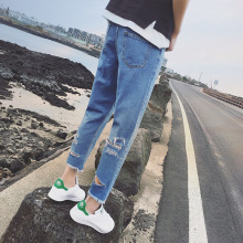 牛仔裤男九分裤宽松直筒修身裤百搭学生小脚裤潮流破洞磨边休闲裤