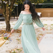2017夏波西米亚海边度假裙雪纺一字肩抹胸海滩裙露肩连衣裙长裙女