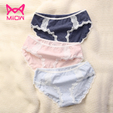 3条装猫人内裤女纯棉档中腰性感蕾丝透气无痕女裤头女生三角短裤