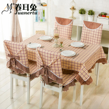 卷耳兔田园桌布布艺简约格子餐桌布椅垫椅套套装台布茶几布椅子套