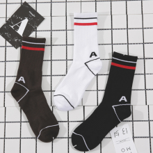韩国ulzzang原宿港风字母条纹纯棉中筒袜 男女情侣运动长袜子潮流