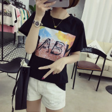 2017春夏大码印花女装学生百搭套头宽松韩版t恤女短袖打底衫潮