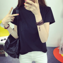 新款韩版口袋学生简约短袖t恤女衫夏装半袖宽松七分袖上衣春夏潮