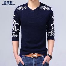 春季新款提花碎花男士V领毛衣男装修身韩版针织衫青年线衣线衫潮