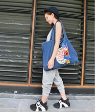 2017韩国新款时尚女包牛仔帆布单肩包布包牛仔女包妈咪包大购物袋