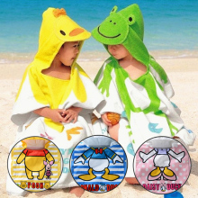 优质出口韩国割绒卡通纯棉浴袍儿童毛巾斗篷浴巾带帽宝宝沙滩巾