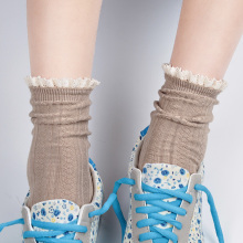 日系韩国春秋冬粗线女袜中筒袜森系花边复古纯棉堆堆袜短袜子包邮