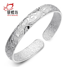 纯银手镯s999足银女繁花开口白银镯子老人送妈妈长辈礼物手环女款