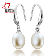 珍珠耳环银饰长款耳饰女贝珠耳坠正圆S925银天然珍珠母贝耳钉