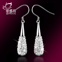 925银饰水滴满钻耳环女韩版气质可爱时尚耳饰耳坠女长款银耳环女