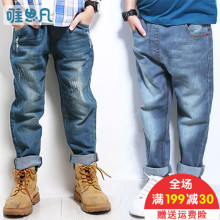 唯思凡童装2017男童牛仔裤春秋儿童裤子韩版休闲裤中大童男装长裤