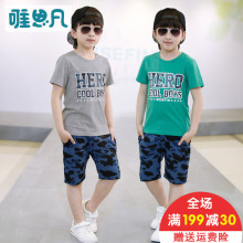唯思凡男童套装2017夏季儿童休闲迷彩运动服中大童纯棉短袖两件套