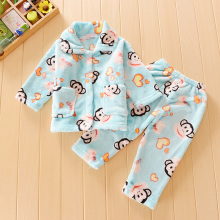 冬款三层夹棉加厚保暖小宝宝法兰绒家居服儿童珊瑚绒睡衣套装男女