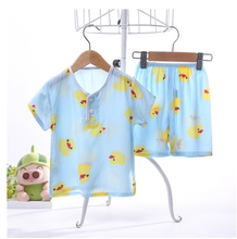 宝宝绵绸套装男女儿童纯棉绸睡衣短袖套装婴儿夏装中小童睡衣包邮