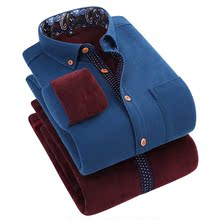 职场冬季男装灯芯绒加绒加厚保暖长袖衬衫复古 潮 条绒男保暖衬衣